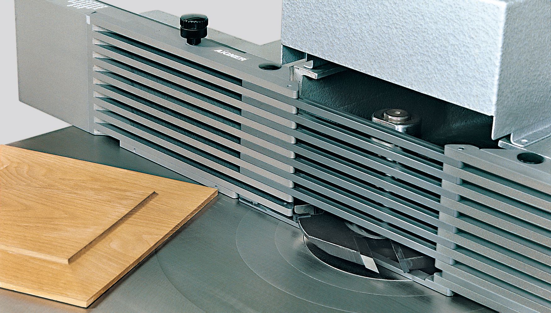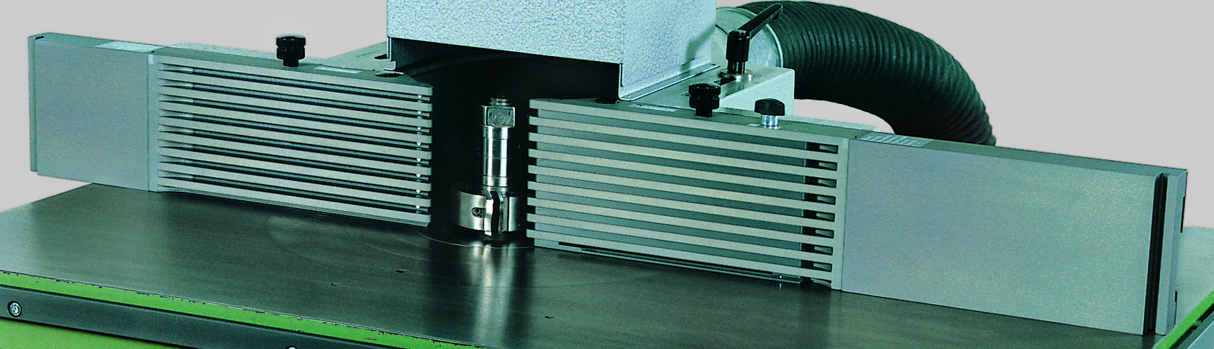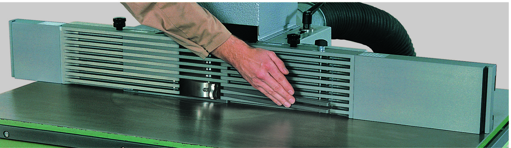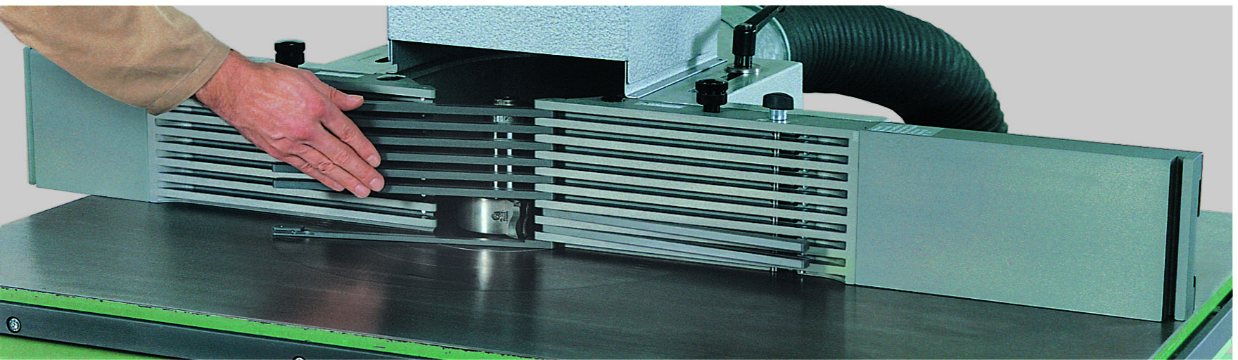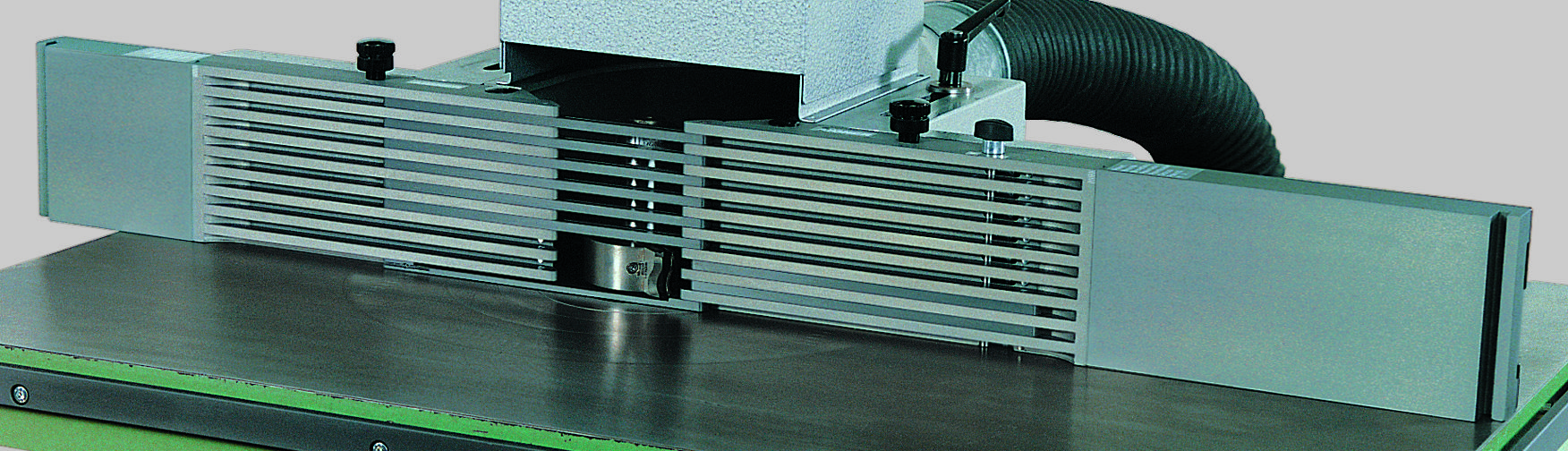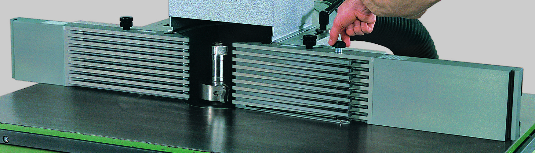 On conventional spindle milling machines bridging the gap between the infeed and outfeed fence can be difficult. The fence uniquely closes this gap allowing the work- piece to be guided past the cutting tool. Well designed and engineered features provide further operational possibilities.
