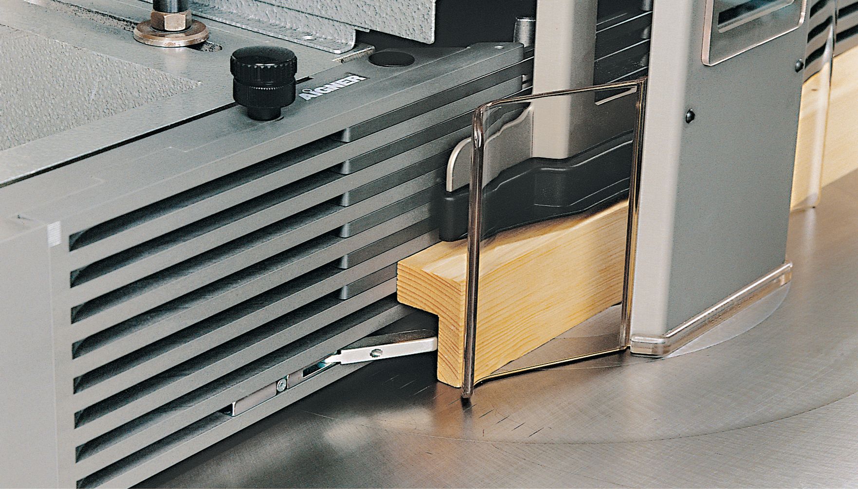 ● The guide bars interlock in the outfeed fence case, providing a secure and smooth surface, supporting the workpiece in the non-machined area.