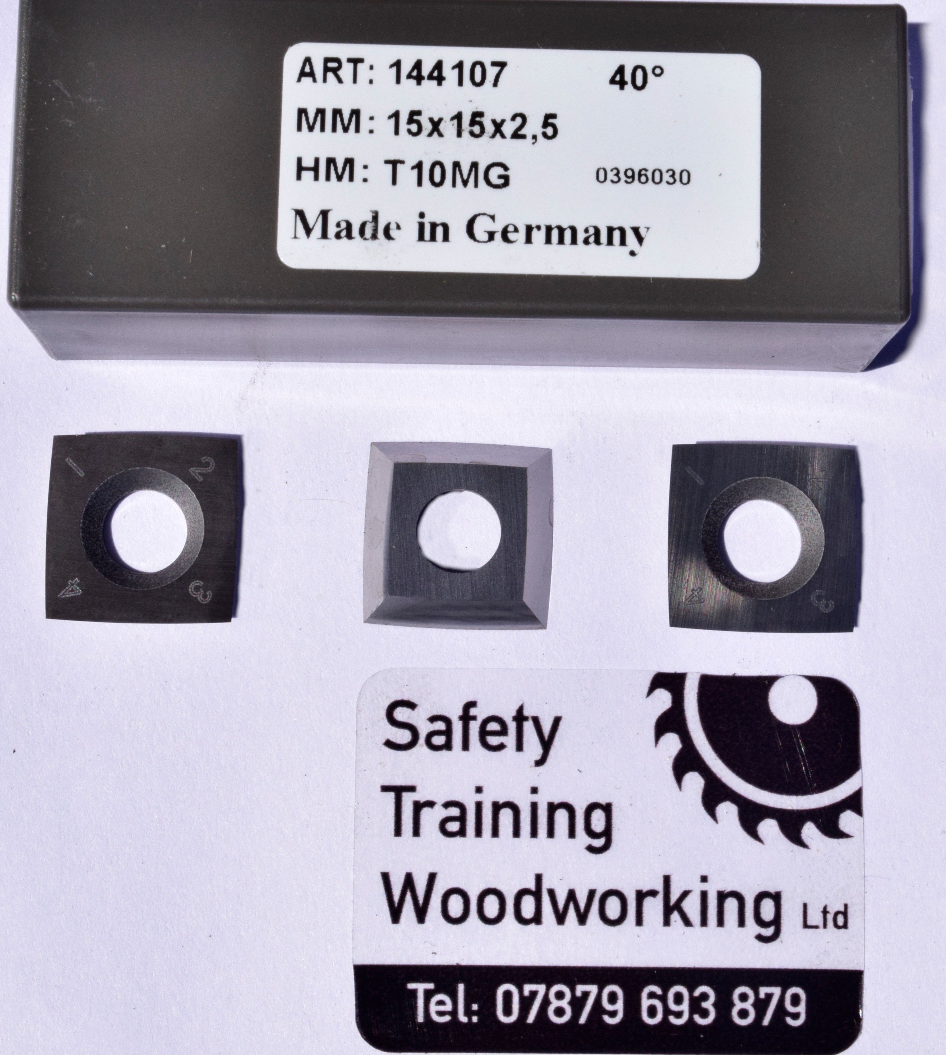 The TCT  15 x 15 x 2.5 40° tips to fit the Martin spiral type blocks on their surface/thickness planer machines.